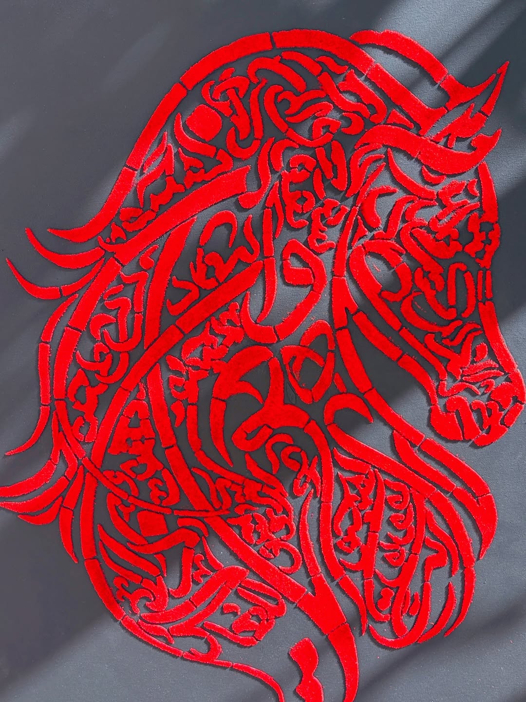تابلوی هنری وان یکاد با طرح اسب، یک اثر ماندگار و فاخر از هنر اسلامی–مدرن است که با استفاده از پودر مخمل باکیفیت روی بوم اجرا شده است. متن «وَإِن یَکادُ الَّذینَ…» به‌صورت کاملاً خلاقانه در قالب خطوط اسلیمی و خوشنویسی تلفیقی، فرم یک اسب زیبا را ساخته و به تابلو جلوه‌ای منحصر‌به‌فرد داده است.